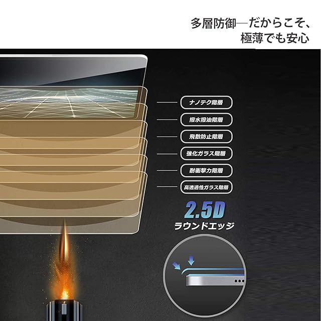 【飛散防止】保護ガラス素材は日本旭硝子素材を使用、旭硝子社製ガラス素材は通常のPETフィルムより4倍の強度です。9Hの表面硬度を誇る保護フィルムが摩擦や傷から液晶ガラスをしっかり保護します、引っかき傷に強く、うっかり鍵や硬貨などとこすれてしまっても傷がつかず、きれいな画面を保ちます.