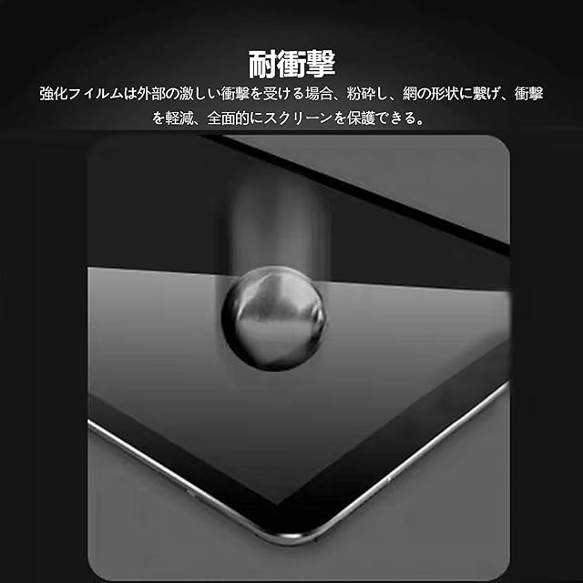 【保護力3倍Up】日本製ガラス素材使用。鉄球落下テストにも耐える耐衝撃性:衝撃力を分散する靭性化層、衝撃力を吸収するガラス層、サイドからの衝撃を緩和するラウンドエッジの三つの構造。一般的な製品に比べ3倍以上の保護力があり、画面の破損を最低限まで抑え、衝撃を受けても割れにくい。優れた耐スクラッチ性能:硬度9Hのフィルムが日常的なスクラッチから守り、傷を付きにくくします。