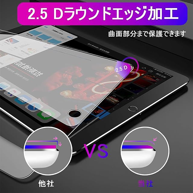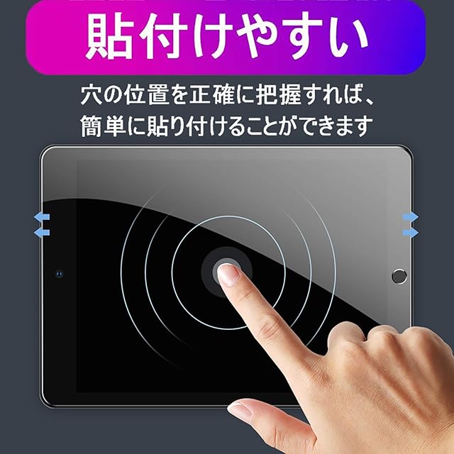 <br><br>【対応機種】: iPad 9.7インチ(2018/2017年新型) / iPad Pro 9.7 / iPad Air 2(2014)/ iPad Air(2013) 9.7 インチ用。 <br><br>【 業界高硬度9H】日本国産の旭硝子ガラスと高度な加工技術により、iPad 9.7 フィルムの表面硬度は最高の9Hに達しており、お使いのタブレットをあらゆる衝撃から徹底的に守ってくれます。<br><br>【高感度タッチ】タッチ操作するときは支障なく、純正ガラスをこえるぐらい非常に滑らかで素晴らしい手触り心地です。<br><br>【 2.5Dラウンドエッジ加工】このフィルムはレザで精細に切られ、加工します。フィルムは装着後でも、ケースとは全然干渉しないです。角も2.5Dラウンドエッジできているため、滑らかな質感を与えてくれます。<br><br>【ウルトラクリア】超薄の0.3mmと99.9%高透過率で、何も貼っていないような感じで、iPad Retinaディスプレイをそのままお楽しみいただけます。<br><br>【気泡ゼロ】シリコーン吸着層に高品質な接着剤を使用し、気泡が入りにくく、位置合わせてから、フィルムの真ん中を軽く押すだけで気泡なし綺麗に吸着します。超初心者の方でも一発で綺麗に晴れます。<br><br>【防汚・指紋加工】高品質な防汚・指紋コーティングを施されるため、普通のフィルムより、指紋や汚れなどが付きにくいです。付いても簡単に拭き取れます。常に画面の美しさと綺麗さを保ちます。<br><br>【飛散防止】飛散防止コーティングを加工されてるため、フィルムは割った場合でも、破片は張り付いた状態で飛び散らず、ご自身をけがから守ってくれます。 <br><br>【iPad 9.7専用ガラス保護フィルム】取り扱い説明<br><br>◆空気が乾燥しており、静電気が発生するのが多く、お風呂場など無風、ホコリの少ない場所での貼り付けをお勧めです。<br><br>◆フィルムを貼り付ける前に、手を清潔にしてください。<br><br>◆フィルムを綺麗に貼るために、位置を合わせ前に液晶画面に汚れやホコリが付いていないことを再度ご確認ください。<br><br>① 濡れたティッシュペーパーや雑巾でスクリーンをきれいに拭き、埃の取り除きパッドで埃を除去する。<br><br>② 保護フィルムを開き、スクリーンの四つのコーナーに合わせ、殻の位置に合わせて軽く下ろす<br><br>③ 手でスクリーンの中心を押し、強化フィルムが自然にスクリーンに吸着する。<br><br>④ 清潔雑巾で余計の気泡を押し出し、操作完了。