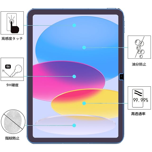 <br><br> <b>【対応機種】</b> <br>iPad 第10世代 2022発売 10.9インチ 専用 ガラスフィルム 画面保護フィルム <br><br> <b>【 業界高硬度9H】</b> <br> 旭硝子ガラスと高度な加工技術により、iPad フィルムの表面硬度は最高の9Hに達しており、お使いのiPadをあらゆる衝撃から徹底的に守ってくれます。<br><br> <b>【高感度タッチ】</b> <br> タッチ操作するときは支障なく、純正ガラスをこえるぐらい非常に滑らかで素晴らしい手触り心地です。<br><br> <b>【 2.5Dラウンドエッジ加工】</b> <br> このフィルムはレザで精細に切られ、加工します。フィルムは装着後でも、ケースとは全然干渉しないです。角も2.5Dラウンドエッジできているため、滑らかな質感を与えてくれます。<br><br> <b>【保護力3倍Up】</b> <br>鉄球落下テストにも耐える耐衝撃性:衝撃力を分散する靭性化層、衝撃力を吸収するガラス層、サイドからの衝撃を緩和するラウンドエッジの三つの構造。一般的な製品に比べ3倍以上の保護力があり、画面の破損を最低限まで抑え、衝撃を受けても割れにくい。優れた耐スクラッチ性能:硬度9Hのフィルムが日常的なスクラッチから守り、傷を付きにくくします。<br><br> <b>【気泡ゼロ】</b> <br> シリコーン吸着層に高品質な接着剤を使用し、気泡が入りにくく、位置合わせてから、フィルムの真ん中を軽く押すだけで気泡なし綺麗に吸着します。超初心者の方でも一発で綺麗に晴れます。<br><br> <b>【防汚・指紋加工】</b> <br> 高品質な防汚・指紋コーティングを施されるため、普通のフィルムより、指紋や汚れなどが付きにくいです。付いても簡単に拭き取れます。常に画面の美しさと綺麗さを保ちます。<br><br> <b>【飛散防止】</b> <br> 飛散防止コーティングを加工されてるため、フィルムは割った場合でも、破片は張り付いた状態で飛び散らず、ご自身をけがから守ってくれます。 <br> <br> <b>【ipad 10 専用ガラス保護フィルム】取り扱い説明</b> <br>◆空気が乾燥しており、静電気が発生するのが多く、お風呂場など無風、ホコリの少ない場所での貼り付けをお勧めです。 </b> <br>◆フィルムを貼り付ける前に、手を清潔にしてください。</b> <br>◆フィルムを綺麗に貼るために、位置を合わせ前に液晶画面に汚れやホコリが付いていないことを再度ご確認ください。 <br>① 濡れたティッシュペーパーや雑巾でスクリーンをきれいに拭き、埃の取り除きパッドで埃を除去する。<br>② 保護フィルムを開き、スクリーンの四つのコーナーに合わせ、殻の位置に合わせて軽く下ろす <br>③ 手でスクリーンの中心を押し、強化フィルムが自然にスクリーンに吸着する。 <br>④ 清潔雑巾で余計の気泡を押し出し、操作完了。