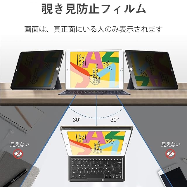 ✅【プライバシー保護】正面からの見やすさには邪魔がなく、斜めからの覗き見をブロックしたipad 第9/8/7世代 覗き見防止フィルムです。電車などでも安心のプライバシー保護フィルムです。