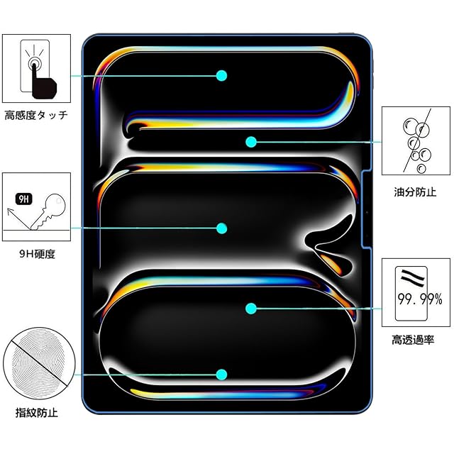 <br><br> <b>【対応機種】</b> <br>iPad Pro 13インチ 2025/2024年 M5/M4チップモデル用。発注時に型番が正しいかどうかをきちんとチェックし、発注ミスや無用な迷惑をかけないようにお願いします。<br><br> <b>【 業界高硬度9H】</b> <br> 旭硝子ガラスと高度な加工技術により、iPad フィルムの表面硬度は最高の9Hに達しており、お使いのiPadをあらゆる衝撃から徹底的に守ってくれます。<br><br> <b>【高感度タッチ】</b> <br> タッチ操作するときは支障なく、純正ガラスをこえるぐらい非常に滑らかで素晴らしい手触り心地です。<br><br> <b>【 2.5Dラウンドエッジ加工】</b> <br> このフィルムはレザで精細に切られ、加工します。フィルムは装着後でも、ケースとは全然干渉しないです。角も2.5Dラウンドエッジできているため、滑らかな質感を与えてくれます。<br><br> <b>【ウルトラクリア】</b> <br> 超薄の0.3mmと高透過率で、何も貼っていないような感じで。<br><br> <b>【気泡ゼロ】</b> <br> シリコーン吸着層に高品質な接着剤を使用し、気泡が入りにくく、位置合わせてから、フィルムの真ん中を軽く押すだけで気泡なし綺麗に吸着します。超初心者の方でも一発で綺麗に晴れます。<br><br> <b>【防汚・指紋加工】</b> <br> 高品質な防汚・指紋コーティングを施されるため、普通のフィルムより、指紋や汚れなどが付きにくいです。付いても簡単に拭き取れます。常に画面の美しさと綺麗さを保ちます。<br><br> <b>【飛散防止】</b> <br> 飛散防止コーティングを加工されてるため、フィルムは割った場合でも、破片は張り付いた状態で飛び散らず、ご自身をけがから守ってくれます。 <br> <br> <b>【iPad Pro 13インチ 専用ガラス保護フィルム】取り扱い説明</b> <br>◆空気が乾燥しており、静電気が発生するのが多く、お風呂場など無風、ホコリの少ない場所での貼り付けをお勧めです。 </b> <br>◆フィルムを貼り付ける前に、手を清潔にしてください。</b> <br>◆フィルムを綺麗に貼るために、位置を合わせ前に液晶画面に汚れやホコリが付いていないことを再度ご確認ください。 <br>① 濡れたティッシュペーパーや雑巾でスクリーンをきれいに拭き、埃の取り除きパッドで埃を除去する。<br>② 保護フィルムを開き、スクリーンの四つのコーナーに合わせ、殻の位置に合わせて軽く下ろす <br>③ 手でスクリーンの中心を押し、強化フィルムが自然にスクリーンに吸着する。 <br>④ 清潔雑巾で余計の気泡を押し出し、操作完了。