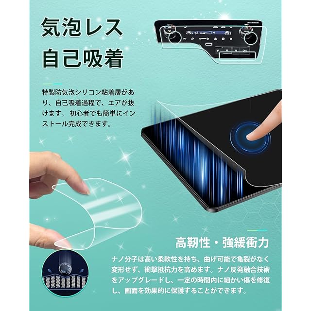 【耐衝撃・傷防止】:極細ナノ分子からなるナノフィルム積層は、高い靭性及び強い緩衝性を有し、物体に与える衝撃を共振により分散させることができ、スクリーンを損傷から保護することができます。また、ナノ反発融合技術は一定時間内にフィルム表面の細かい損傷を修復することができます