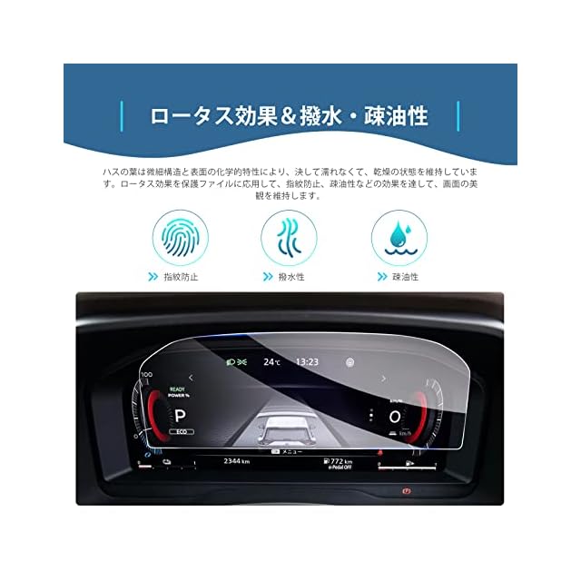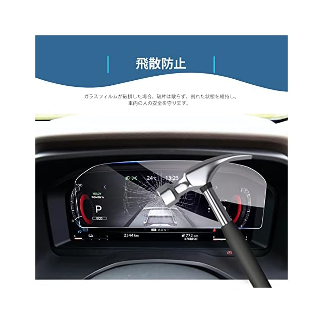 【9H硬度・傷防止】硬度9Hの強化ガラスを素材とし、強い硬度を持ち、スクリーンを外界の利器や硬物に傷つけられないように保護し、メーターの美観を保っています。優れた抗攻撃機能を持ち、スクリーンの安全を守ります。また、保護ファイルは飛散防止技術が加わり、保護ファイルが割れても破片が飛び散らず、車内の人の安全が確保されます。