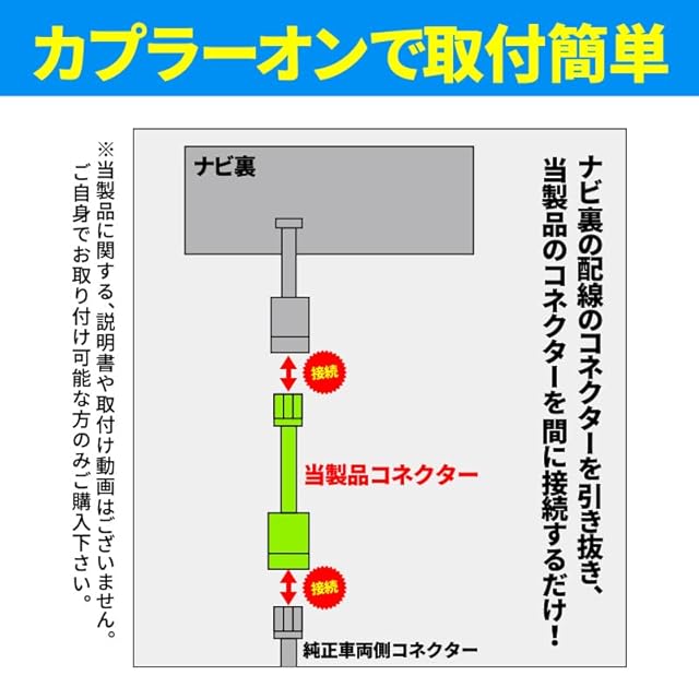 カプラーオンで取付簡単!!ナビの裏側の配線のコネクターの間に挟み込むだけ!