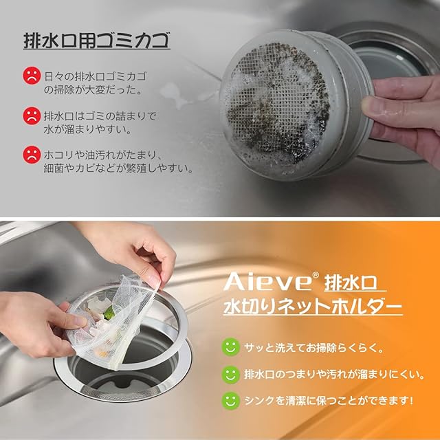 【衛生的】はいすいこう ゴミ受けは水切りネットを取り付けると、ゴミをしっかりキャッチし、スムーズに水を切ることができます。排水口のつまりや汚れが溜まりにくく、シンクを清潔に保つことができます。