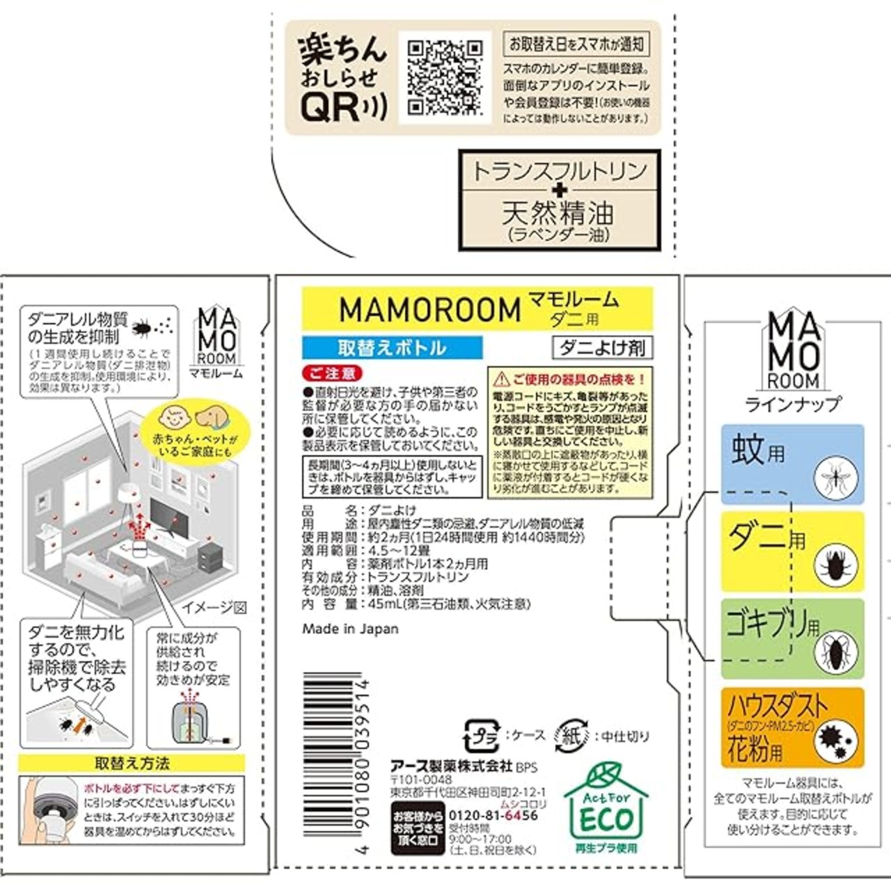 マモルーム ダニ用 詰め替え 2ヵ月用 1個 ダニよけ ダニ対策 防ダニ ダニ避け 防虫 忌避 虫対策 屋内 赤ちゃん ペット 畳 布団 掃除