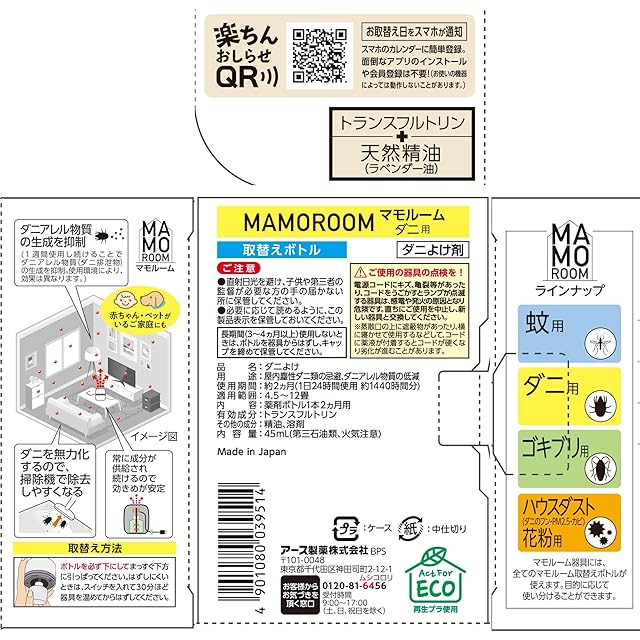 お部屋まるごと予防空間。ダニ除けができる電子虫除けのつめかえ用