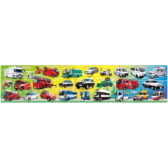 サイレンカー全25台の写真が掲載された絵柄のパノラマパズルです。