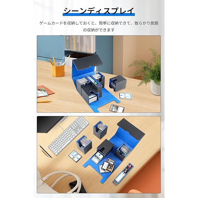 【大容量デッキケース 2024新発売の5in1分離構造】弊社とカードコレクターが共同で設計したデッキケースは、合理的な収納サイズを備えています、出し入れが簡単で。最も斬新な分離設計案を採用し、4つの独立したデッキケースとサイコロボックスが含まれています。4つの独立した小さなデッキケースには異なるタイプのカードを収納でき、小さなデッキケースごとに約220枚のカードを収納できます、カードグループをよりよく区別できるようになります。独立したサイコロ箱はサイコロを収納したり、カードを収納したりすることができる。最大880+枚のカードを収納できます、スリーブ付きのカードも簡単に入れることができる。より良いカード収納方法、簡単で便利です、散らかったコレクション習慣を解決する良い方法。