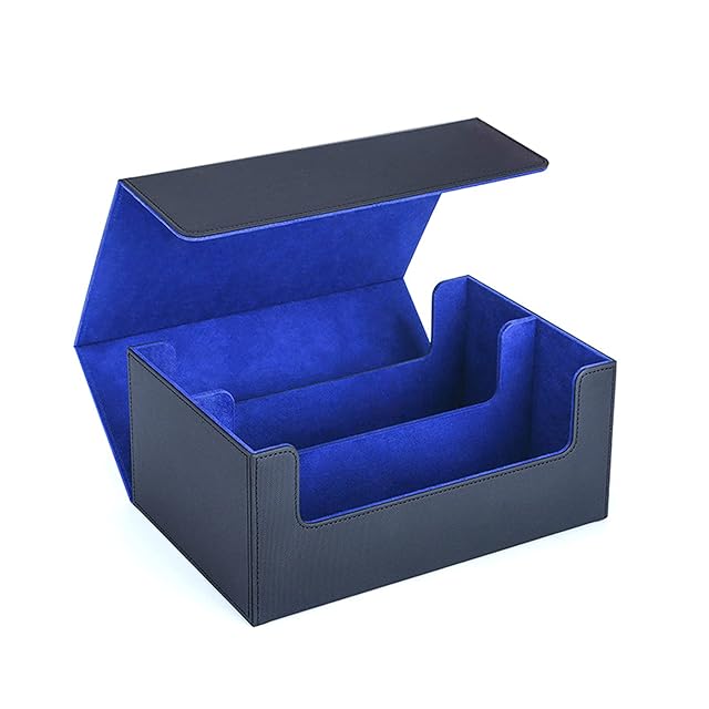 商品名:HG CHASING TRIBE デッキケース トレカケース マグネットローダー 用 ケース PU レザー 66枚のマグネットローダーを格納できます カード1600枚収納 大容量 スリーブ対応 トレーディングカードケース (1600枚のカード収納, 黒、ブルー)