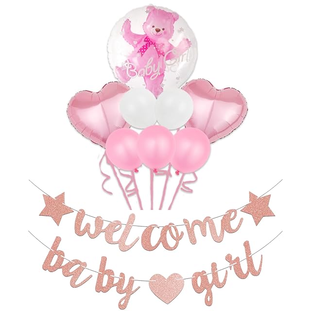 Quikaboo ウェルカム ベビーシャワー 飾り付け welcome baby バルーン 男の子 女の子 装飾 風船 バルーンガーランド shower decoration set banner ジェンダーリビール 出産祝い 妊娠発表 歓迎 ブルー (Welcome girl)