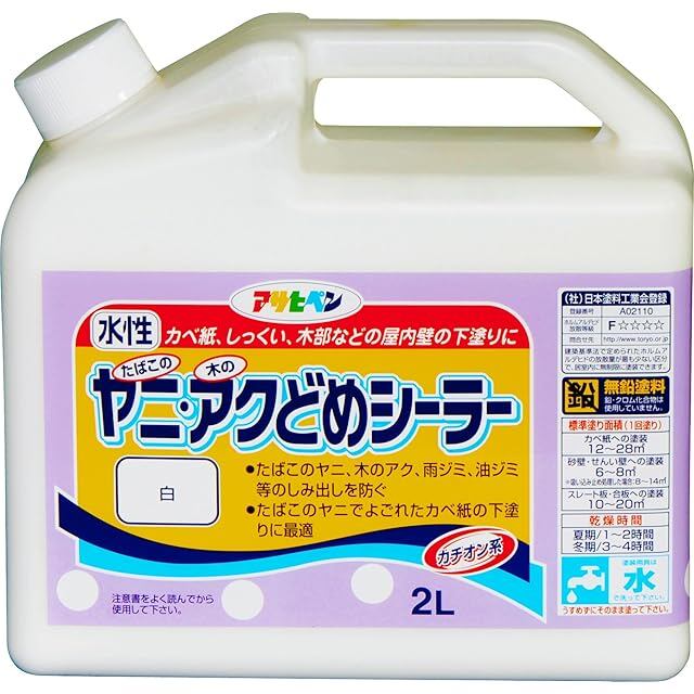 商品名:アサヒペン 水性ヤニ・アクどめシーラー 2L 白 ツヤ消し 1回塗り 下塗り 日本製