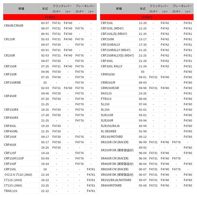補修部品として使用しやすい、ブレーキ、クラッチレバーの単品を設定。単品での装着でも純正と比較して違和感のないデザイン。