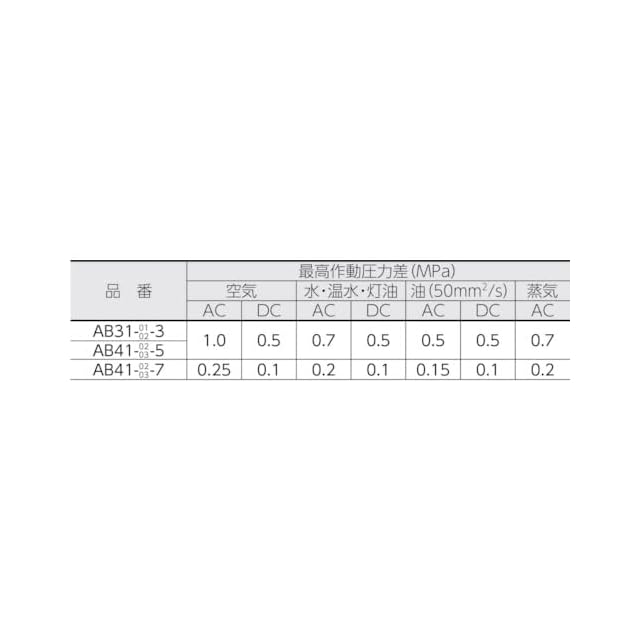 最高作動圧力差(MPa)空気:1.00