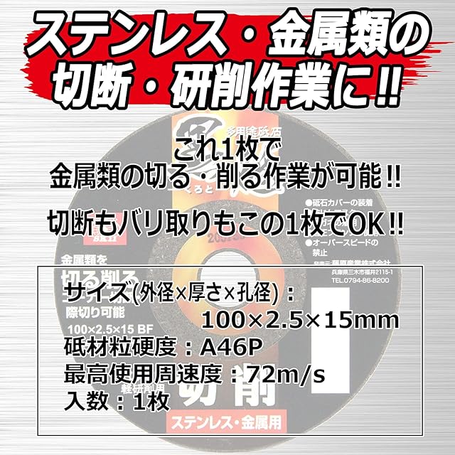 商品名:SK11(エスケー11) ディスクグラインダー用 研磨砥石 黒砥 切削用 金属・ステンレス用 1枚入 100×2.5×15mm