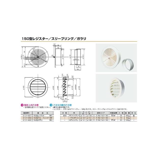商品名:杉田エース(Sugita Ace) エース 換気口 150型 レジスター ホワイトグレー