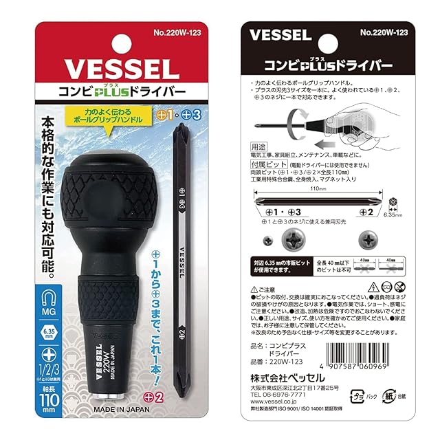 商品名:ベッセル(VESSEL) ボールグリップ 差替ドライバー (+2/+1&+3 ビット付) 220W-123