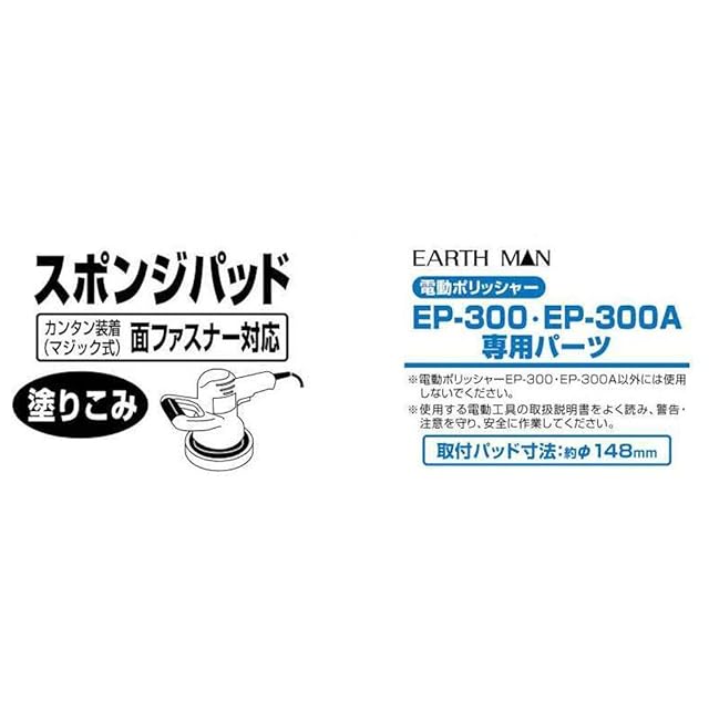 商品名:高儀(Takagi) EARTH MAN 電動ポリッシャー EP-300.EP-300A専用パーツ スポンジパッド 取付パッド寸法:約中148mm 5枚組 カンタン装着(マジック式) 面ファスナー対応 塗りこみ