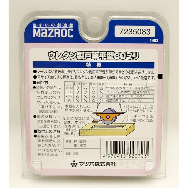 商品名:マツ六 ウレタン製戸車 平型 30ミリ 7235083