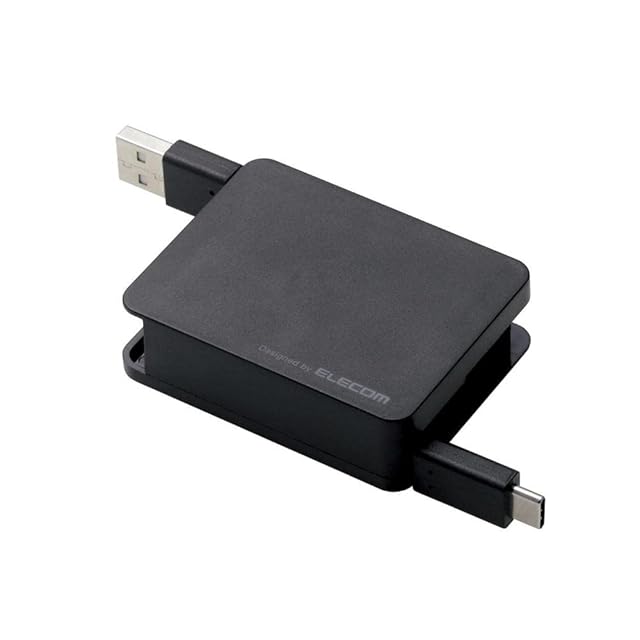 持ち運びに適した巻取りタイプ。USB Standard-A端子を搭載したパソコン・充電器と、USB Type-C端子を搭載したスマートフォンなどの接続ができるUSB2.0ケーブル。