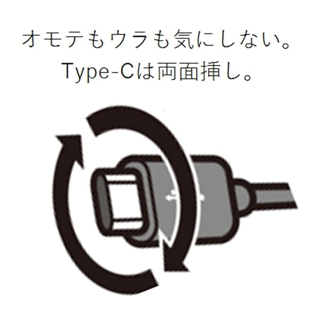 新規格のUSB Type-C(TM)コネクターは、ウラ、オモテに関係なく両面挿せます。