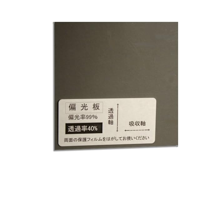 透過率:40% 偏光度:99%以上 偏光軸の方向を示すシール付