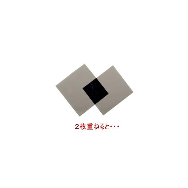 厚さ:約0.2mm<BR> 大きさ:125×125mm <BR> プラスチック製 粘着なし 保護フィルム付き <BR> 偏光軸の方向を示すシール付 <BR> 透過率:40% <BR> 偏光度:99%以上 <BR> 1枚単位<BR>