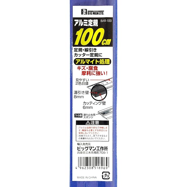 ビッグマン(Bigman) アルミ定規 滑り止め付き 100cm 読み取りやすい2色目盛 BAR-100