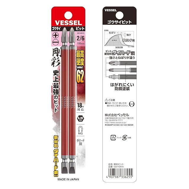 商品名:ベッセル(VESSEL) 両頭コンビ 剛彩ビット +2/-6×150 2本 GS142615