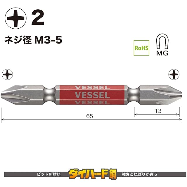 商品名:ベッセル(VESSEL) 40V対応 両頭プラス 剛彩ビット +2×65 2本組 GS142065