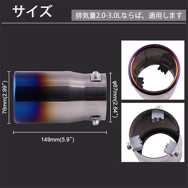 【幅広く対応】- 装着可能マフラーサイズ:40mmΦ~55mmΦ(排気量2.0-3.0Lの車を対応できます)。汎用タイプなので取付直径、バンパーの干渉などが問題なければ取付可能です。ご購入前に、ご車のサイズをちゃんとご確認ください。