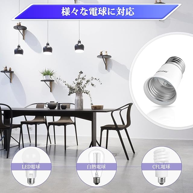 E26口金と電球の間に挿入し、約3CM延長するアダプター(注意:密閉器具に使用しないでください。)