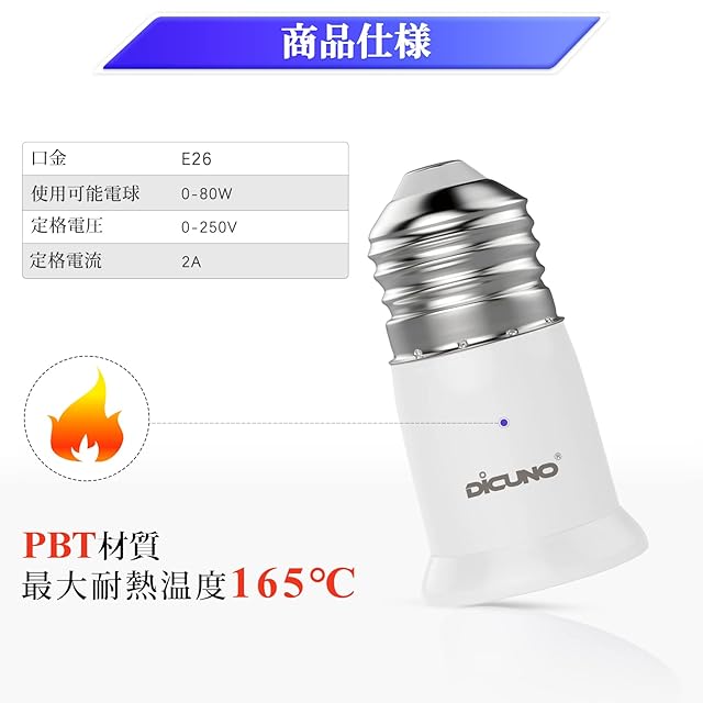 商品名:DiCUNO E26→E26延長ソケット 口金延長アダプター 約3CM延長する 2個セット