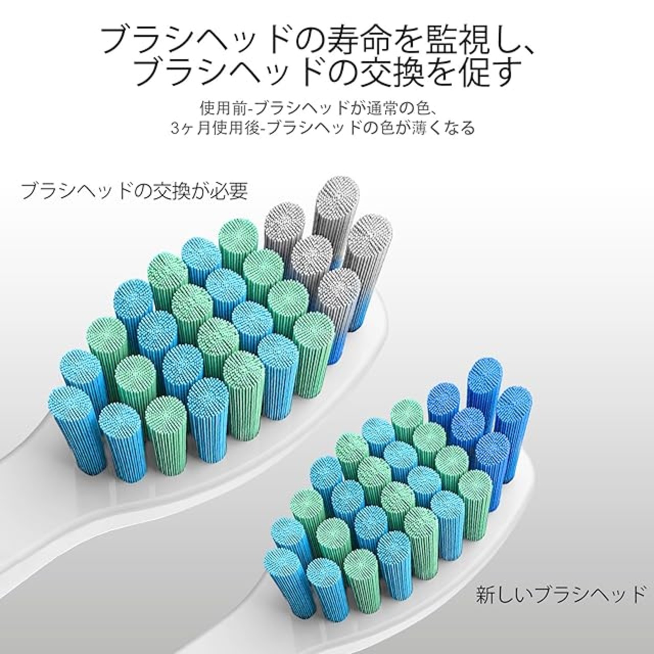 【使いやすい】:右回転でロックが解除され、余分な補助手段なしで交換するのに便利です。長期間使用できる5つの交換用ブラシヘッド。歯科医師は、3ヶ月ごとにブラシヘッドを交換することを推奨しています。