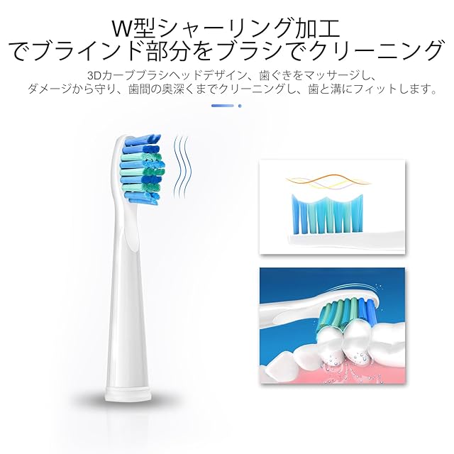 【ユニークなW型ブラシヘッドデザイン】:歯に完璧にフィットし、歯茎を刺激することなく、手動の歯ブラシよりも100%多くのステインとプラークを除去します。