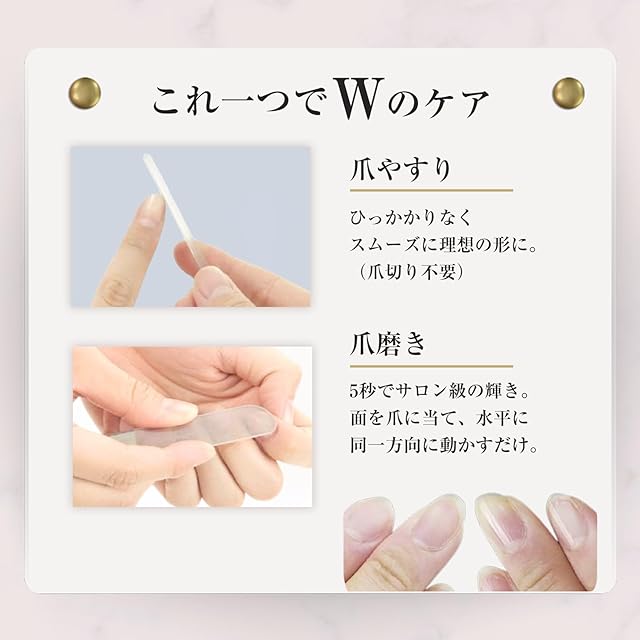【 爪やすりとしても優秀】サロン級の 艶 出しだけでなく、爪やすりとしても非常に優秀。粒子が細かく皮膚を傷つけないので、赤ちゃんのすぐ伸びてくる爪にも最適。 二枚爪 や 荒れた爪 も簡単に 滑らか 艶々になります。最近では 介護 ケアや、素早く仕上げたい ペット の ケア用品 としても重宝されています。綺麗なパッケージだから、ギフト プレゼント にも人気です♪