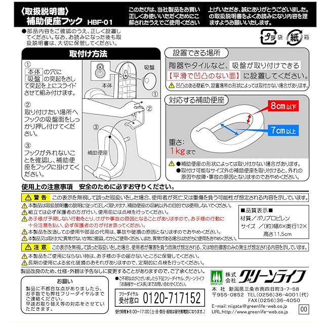 商品名:グリーンライフ(GREEN LIFE) 【日本製】クルーミー 補助便座をかけるフック 貼るだけ簡単 抗菌仕様 モノトーン おしゃれ HBF-01