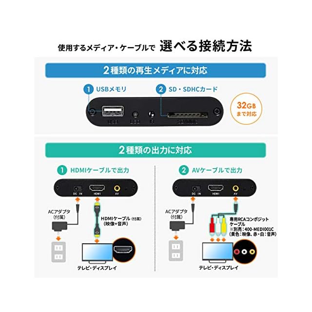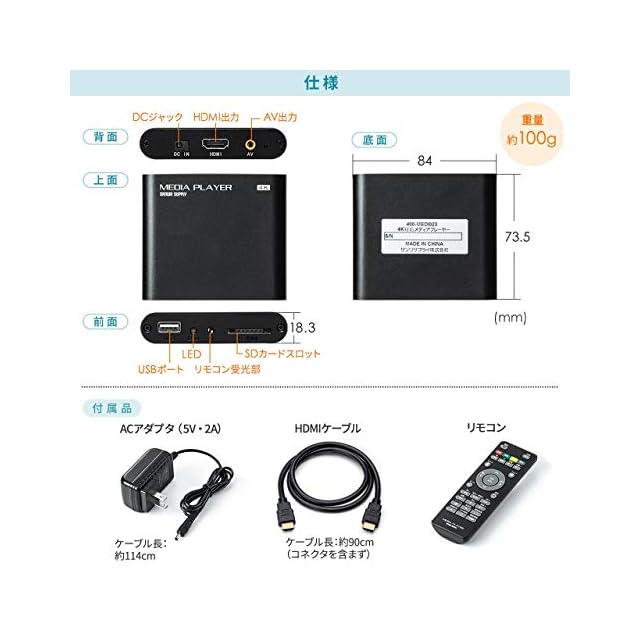 商品名:サンワダイレクト 4K対応 メディアプレーヤー USBメモリ/SDカード対応 HDMI/RCA出力 MP4再生 400-MEDI023