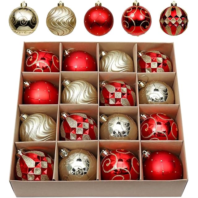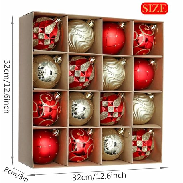 【パッケージとサイズ】クリスマスオーナメントセットには、金、赤のクリスマスボール16個が含まれています。各ボールはシームレス接続を採用し、洗練された外観を作り出しています。ボックスには高品質のエコボール箱を採用し、贅沢感を加えます。