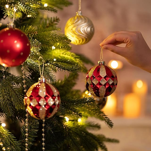 【安全性と耐久性】これらのクリスマスボールは良質な破砕防止プラスチックで作られ、子供、老人、ペットを含むすべての人に安全であり、しかも耐久性があり、長年の楽しみを確保しています。