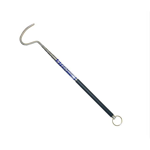 通常時は18cmと非常にコンパクトですが、伸ばすと1mまで長くなり、ロープを手繰り寄せるのに非常に活躍します。