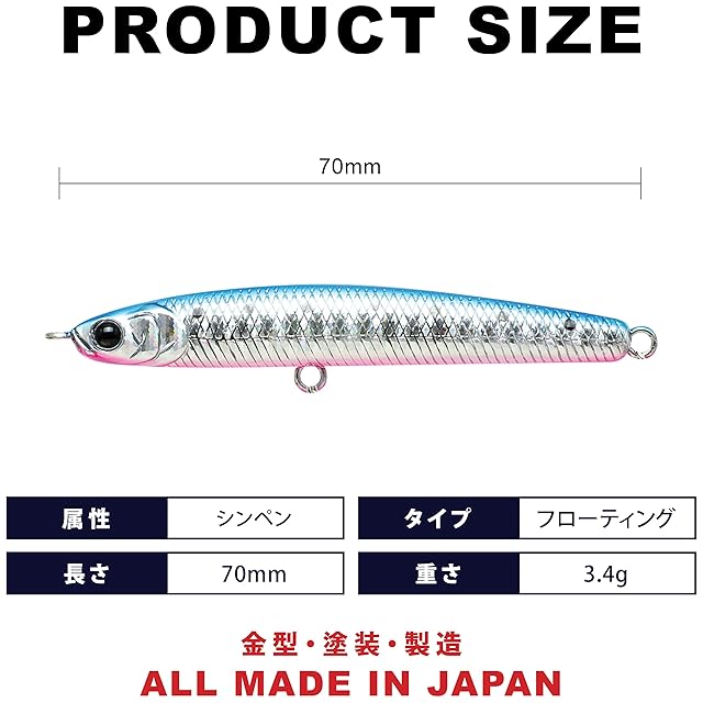 ビーフリーズでもバリッドでも食わなかった魚が、 なぜかワンダーには反応してくる。 それが“釣れる気がしないのに、釣れてしまう” ワンダーシリーズの魔法。 春〜初夏はマイクロベイトパターン・稚アユ・ハク、夏はイナッコ・イワシ・イカ、秋冬はサヨリ・落ちアユ・コノシロ・ハタハタまで対応可能。シルエットとナチュラルなアクションが、どのベイトパターンにも適応します。 静かに、ゆっくり、ただ巻くだけ。 “釣ってる気がしないのに、釣れる。” それが、シンペンの元祖「ワンダー」の真骨頂です。