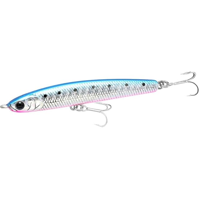 ■ シンキングペンシルならではの“飛距離”と“水平フォール” ワンダーは飛距離にも優れたシンキングペンシル。特に95mmやスリムモデルでは抜群の遠投性能を発揮し、広大なオープンウォーターや遠くのストラクチャーを攻略可能。 また、唯一無二の「水平フォール」も特筆すべきポイント。普通のシンペンが前傾姿勢で沈下するのに対し、ワンダーはラインテンションを軽くかけることで、自然な姿勢を保ったまま水平に沈むのが特徴です。 この特性を活かした「リフト&フォール」は、河川や潮流のあるエリアでとても効果的。アップクロスにキャストして、水の流れに乗せつつテンションフォール→リフトの繰り返しで、リアクションバイトを誘発します。