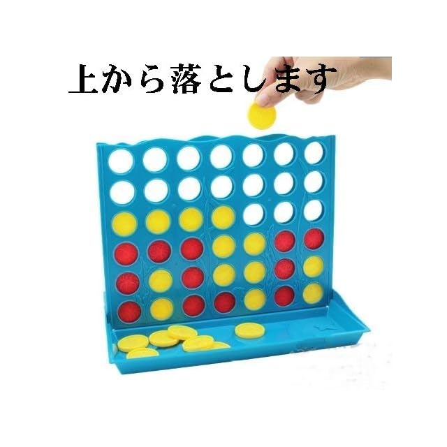 卓上ゲーム 2人で遊びます。交互にコマを下から積み重ね、先に縦・横・斜めのいずれかに直線状に4コマ並べた方が勝ちです。