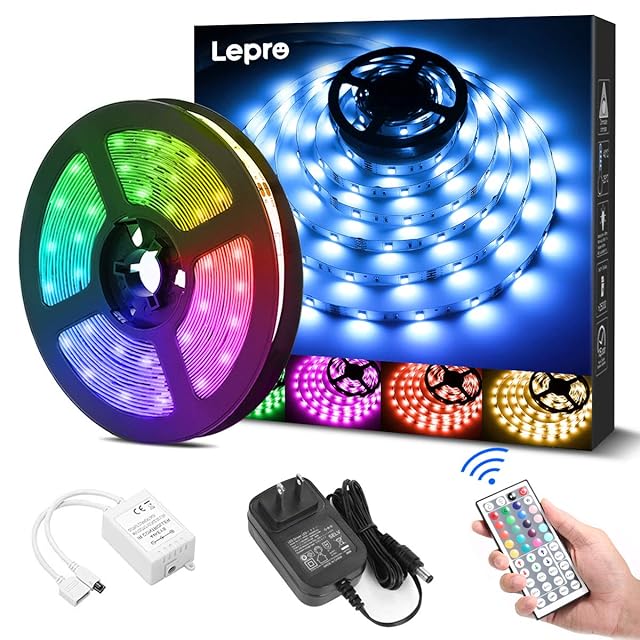 Lepro LEDテープライト 5m RGB テープ ライト 明るい 高輝度 150連 高密度 SMD5050 リモコン付き ledテープ 12v 切断可能 3M両面テープ付き 室内 間接照明 店舗 キャビネット 装飾用