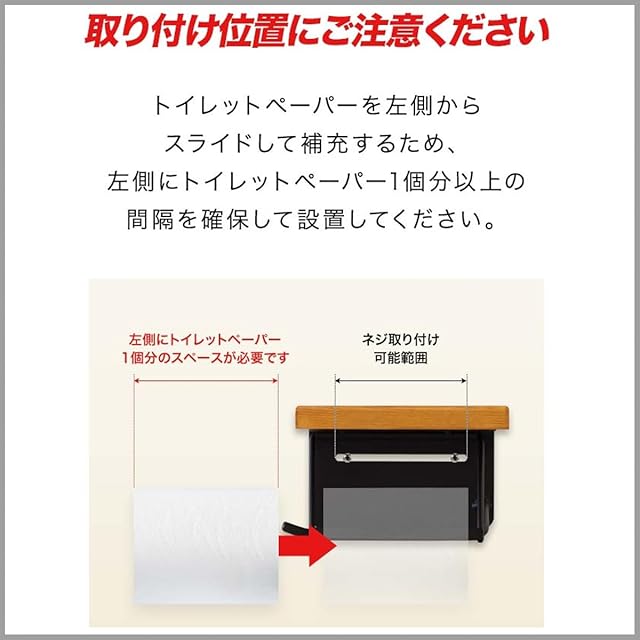 ✅【新たに穴を開けずに設置可能】 元々付いているペーパーホルダーを外して同じ位置に取り付けが可能です。新たにネジ穴を開ける必要がないので賃貸でも安心です。※ネジ・アンカー等は付属しません。