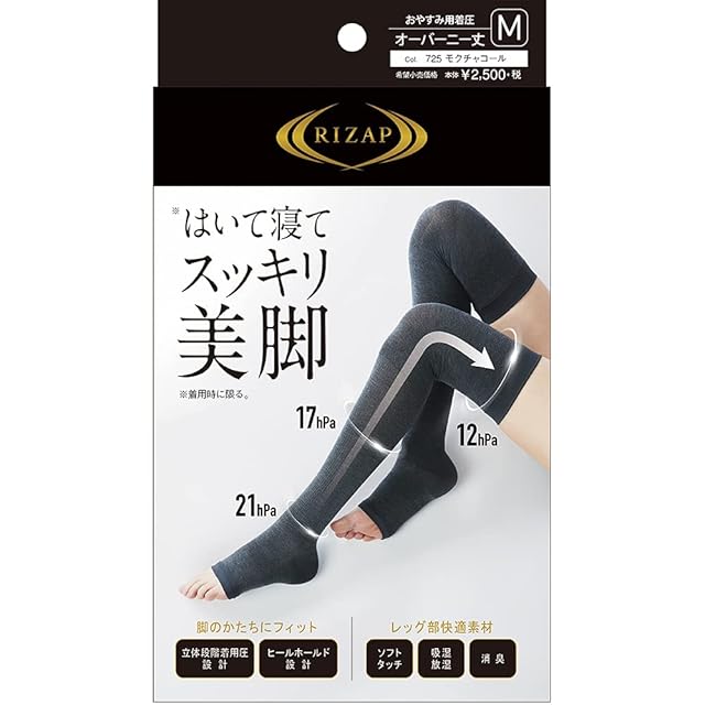 [グンゼ] 着圧オーバーニー RIZAP はいて寝てスッキリ美脚 おやすみ用 トゥレス かかと付 レディース モクチャコール M