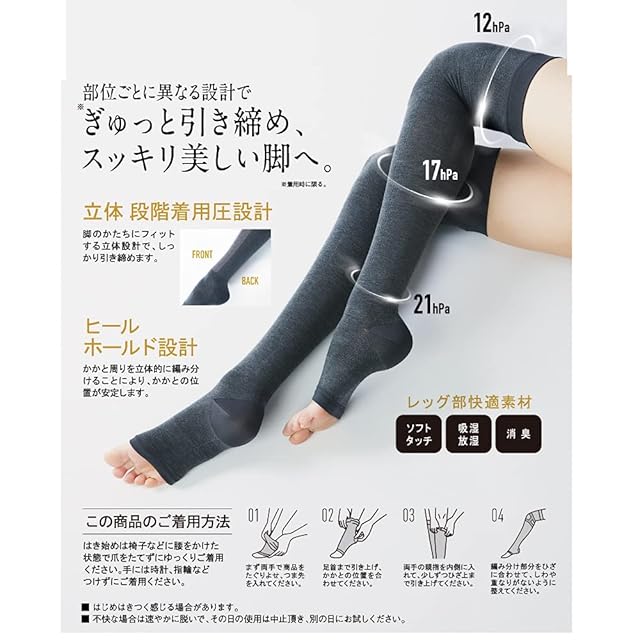 商品名:[グンゼ] 着圧オーバーニー RIZAP はいて寝てスッキリ美脚 おやすみ用 トゥレス かかと付 レディース モクチャコール M