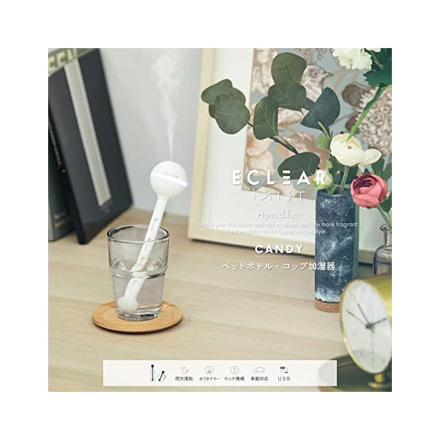 ペットボトルやコップに入れて使える、持ち運びにも便利なスティックタイプのUSBパーソナル加湿器“エクリア ミスト”です。